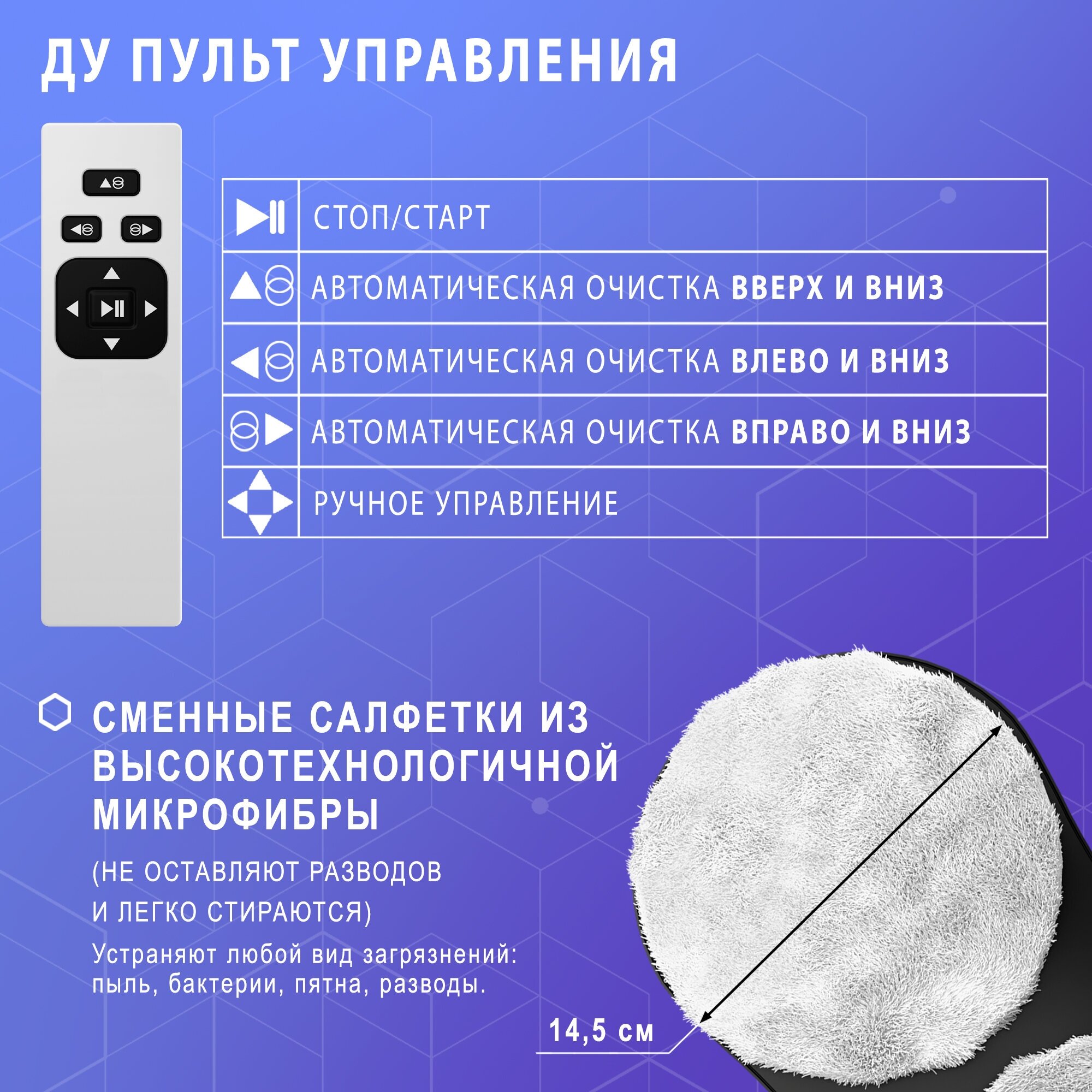 Робот-мойщик окон, с распылителем, страховочный шнур 4 м, пульт ДУ, 90 Вт, 10 сменных тряпок