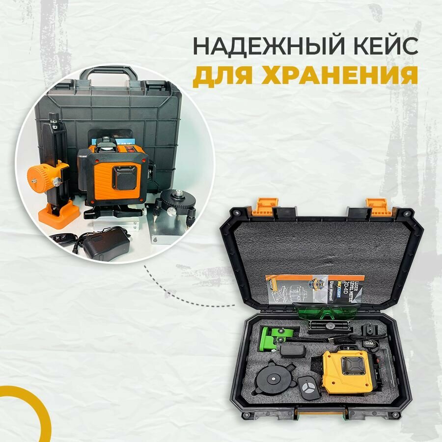 Лазерный уровень 360 / Нивелир 16 лучей / Уровень строительный / Инструменты / Зеленая линия информация: