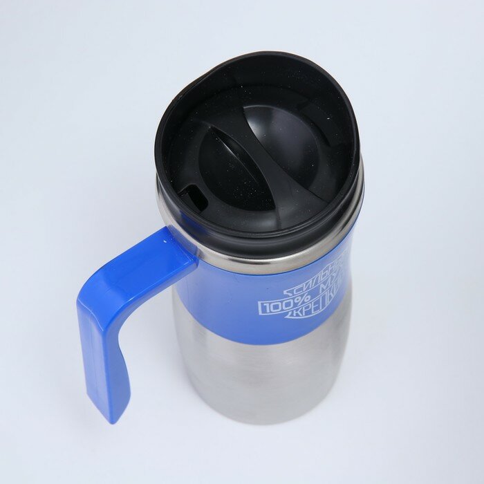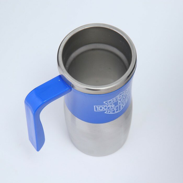 Мастер К Термокружка "100% мужик", 350 мл, сохраняет тепло 3 ч, синяя информация: