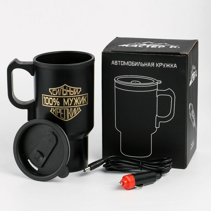 Термокружка Мастер К "Мастер К, 100 % мужик", 450 мл, автомобильная, от прикуривателя (7054770)