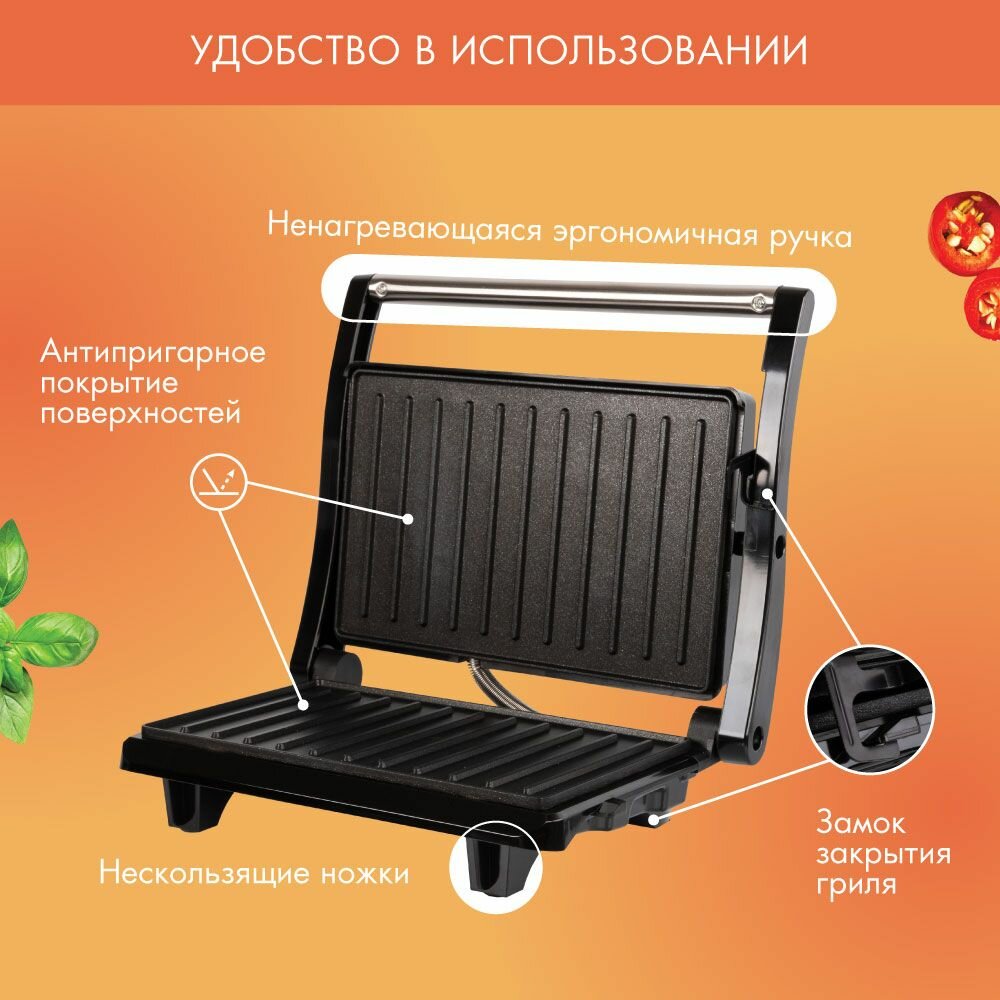 Гриль электрический со съемными панелями ENDEVER GRILLMASTER-245 / 5 авторежимов / открывается на 180 градусов