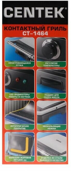 Отзывы на Гриль электрический Centek CT-1464, 2000 Вт, антипригарное покрытие, 29.7х23.5 см