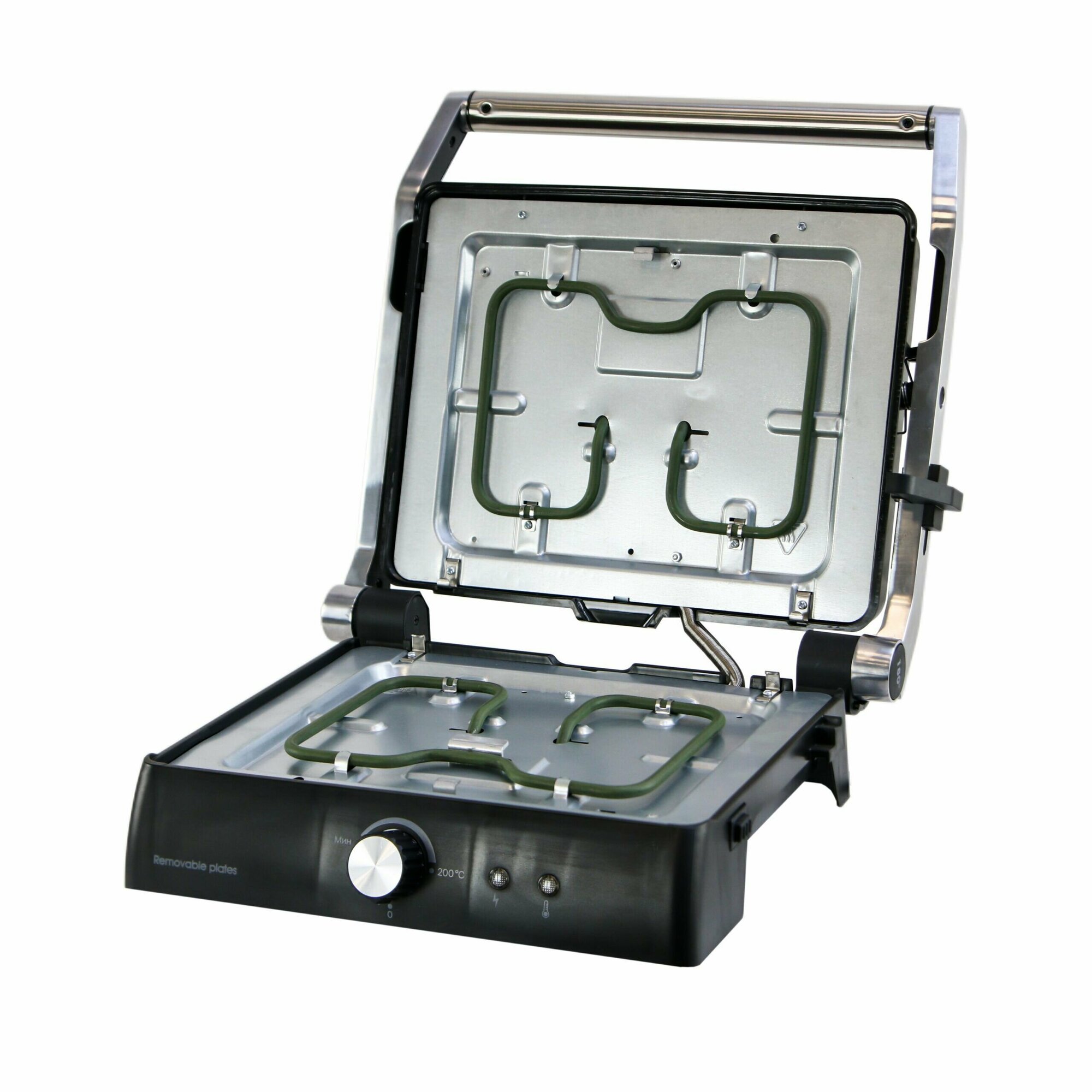 | Особенности | антипригарное покрытие / поддон для сбора жира / контактный гриль / съемные пластины |