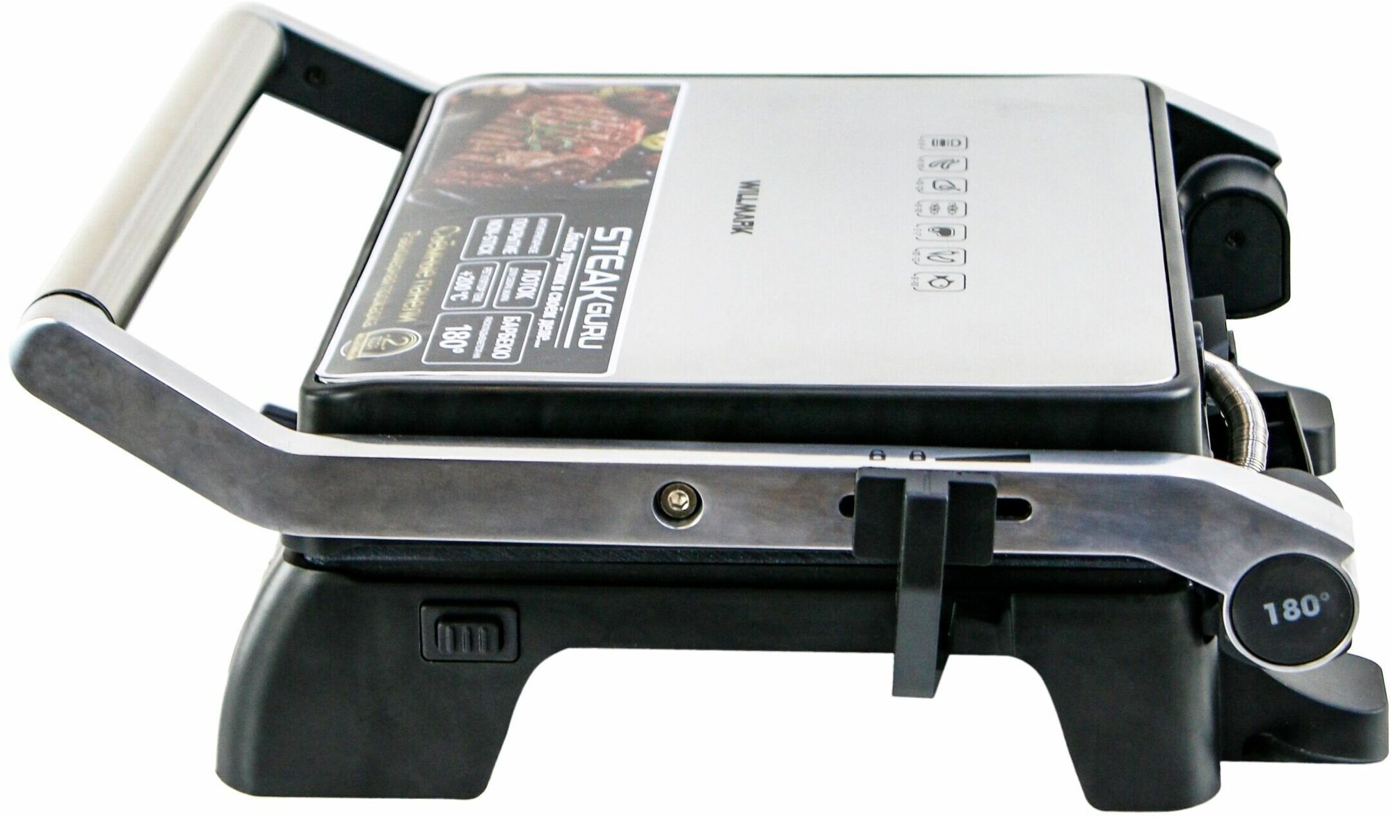 Гриль электрический WILLMARK WG-4320DP серебристый с черным, 2200 Вт