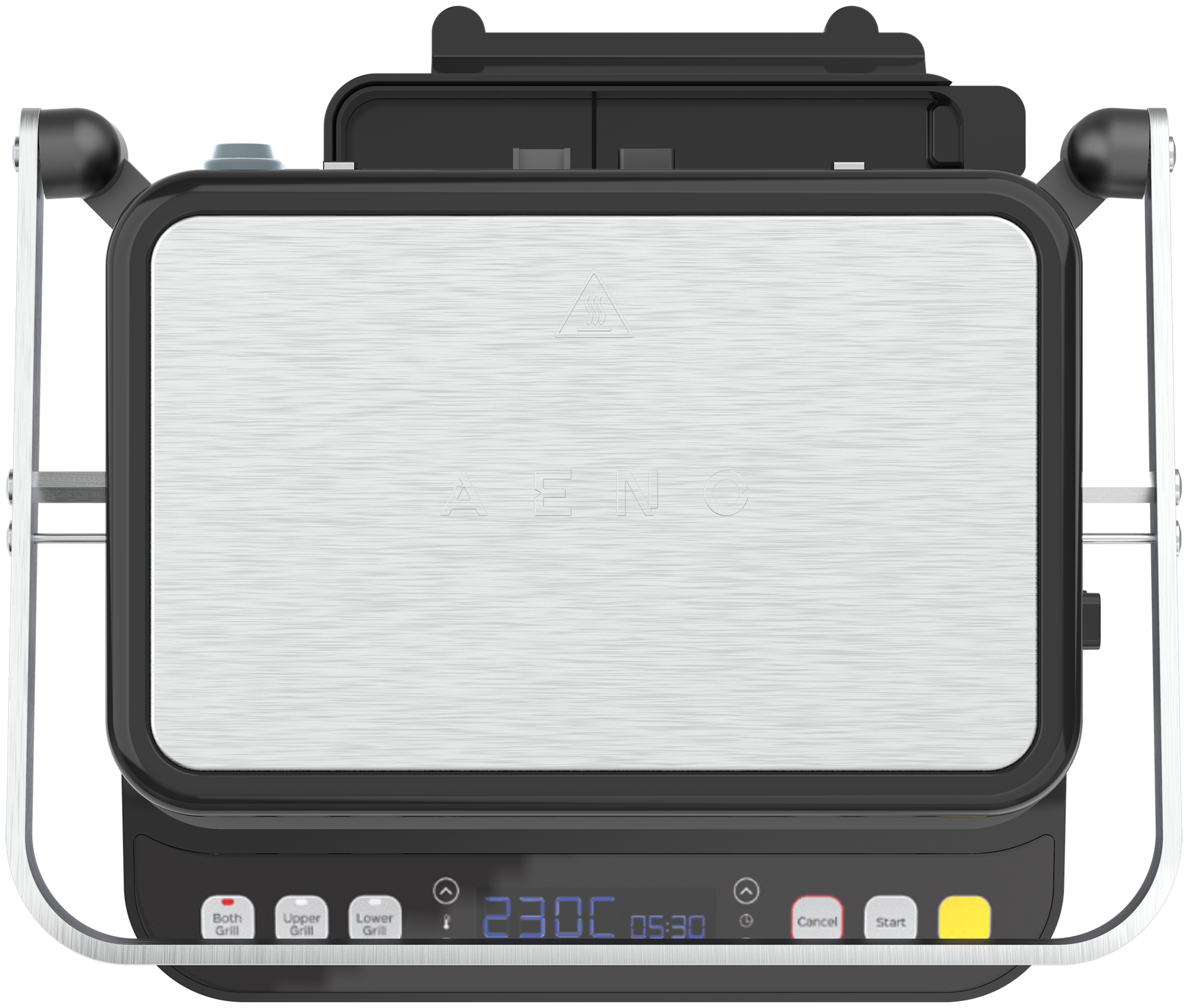| Дополнительная информация | Цветовая и звуковая индикация. Поддон для капель масла. Съемные панели с антипригарным покрытием: легко моются под краном или в посудомоечной машине. Быстрый предварительный нагрев: готов к использованию через 2 минуты. Безопасен для прикосновения: ручка и верхняя поверхность не нагреваются. 3 режима приготовления: верхний гриль, нижний гриль или оба гриля. Точные ручные настройки: до 230 °C с шагом 5 °C; таймер до 60 минут |