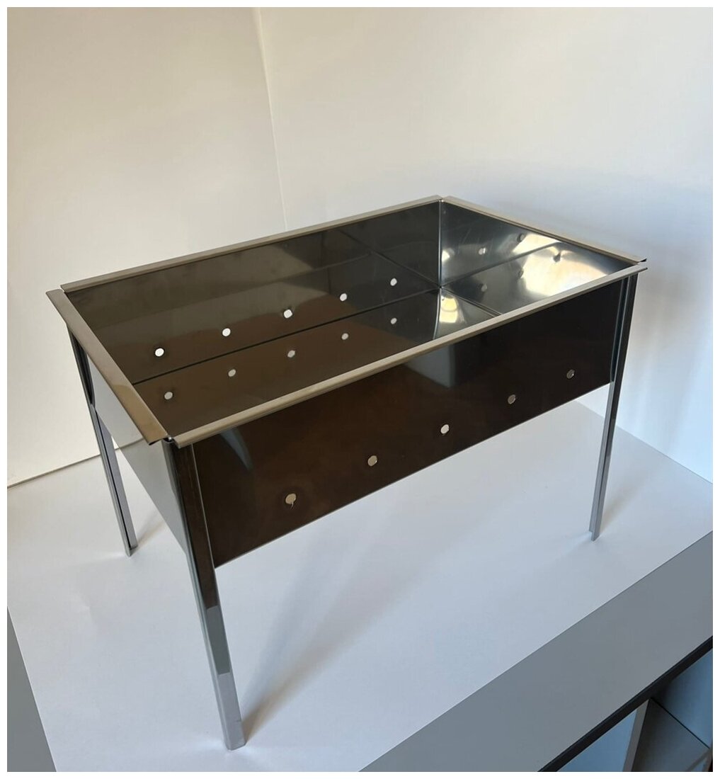 Мангал 800 мм. с полкой-решёткой и полкой под казан, сталь рифленая-усиленная 3 мм. разборный, с полкой под дрова