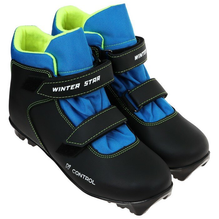 10 цен на Winter Star Ботинки лыжные детские Winter Star control kids, NNN, искусственная кожа, цвет чёрный/синий/лайм-неон, лого белый, размер 31