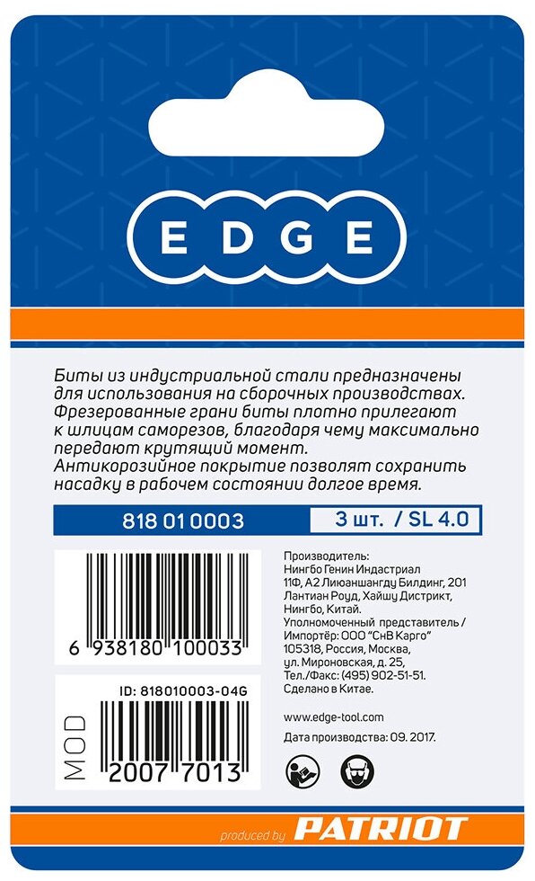 Биты Edge By Patriot SL4, 25 мм, 3 шт информация: