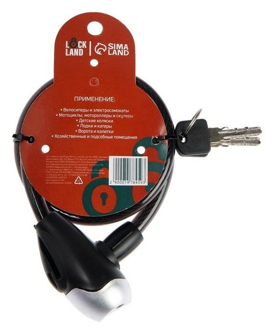 Замок навесной велосипедный LOCKLAND, 12 х 1000 мм