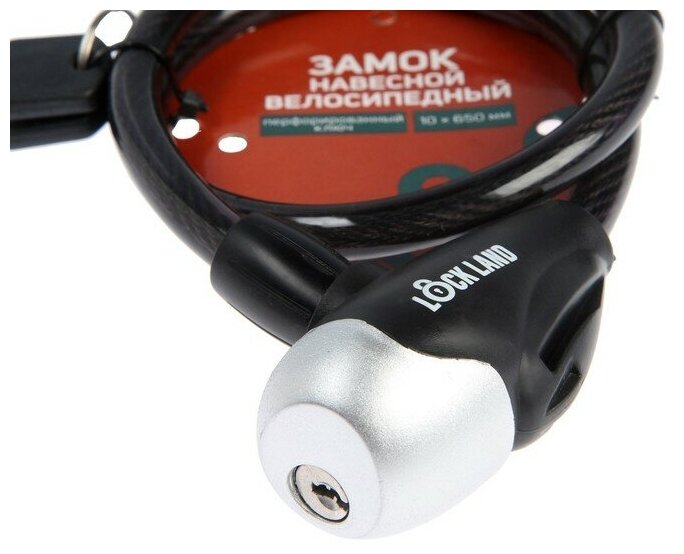 Замок навесной велосипедный LOCKLAND, 10 х 650 мм, перфорированный ключ, цвет черный (1шт.)