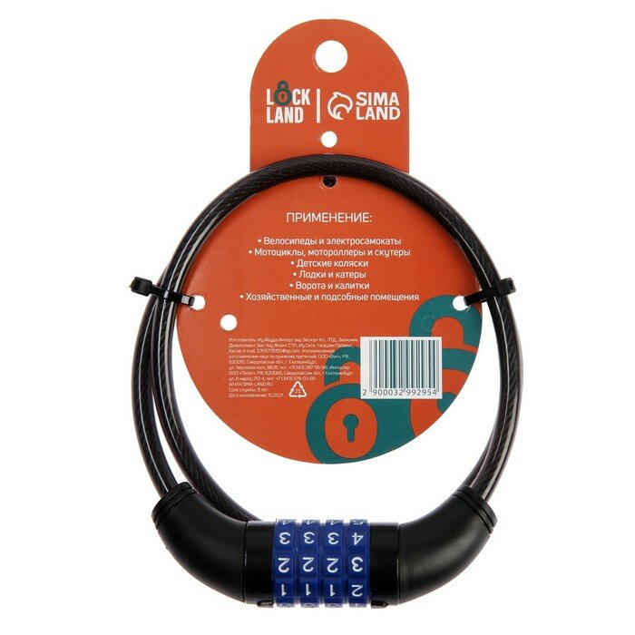 Замок навесной велосипедный LOCKLAND, кодовый, 8 х 800 мм информация: