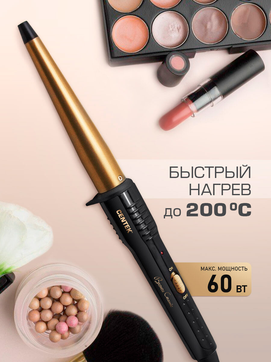 Конические щипцы для завивки CENTEK CT-2077 Bronze/ 60Вт/ керамическое покрытие/ 130 мм/ 200C 1 199 ₽