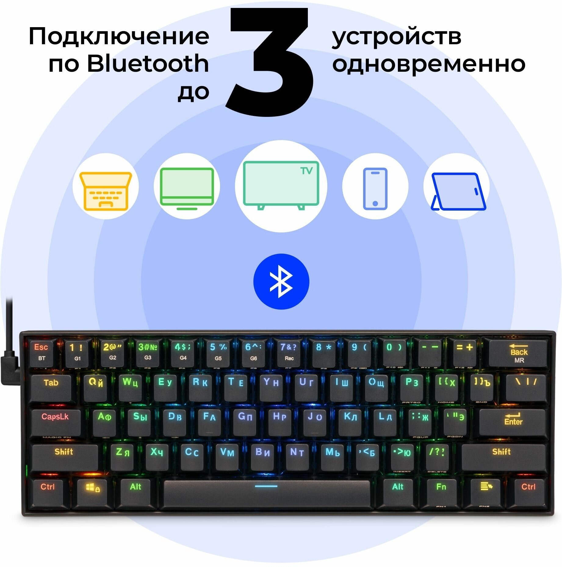 Механическая клавиатура Redragon Draconic Ru,rgb, bluetooth 5.0, Black