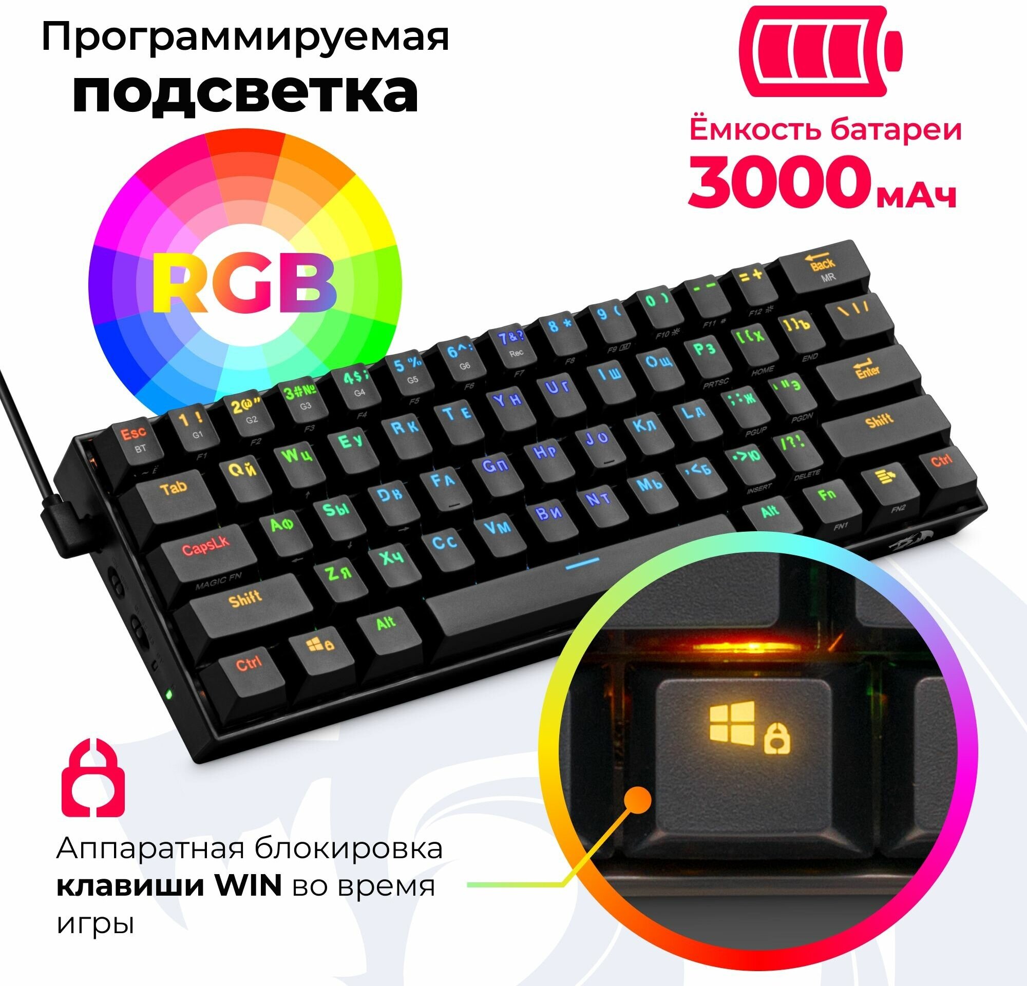 Игровая механическая клавиатура Wolf T60 с RGB-подсветкой/ Type-c подключение/ Русская раскладка