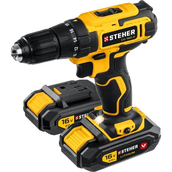 Дрель-шуруповерт аккумуляторная STEHER CD-160-2, в кейсе, 2 АКБ (2Ач) информация: