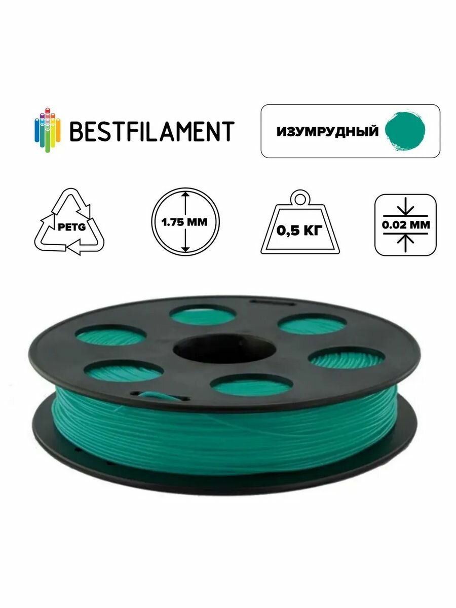 Пластик PETG 1,75мм изумрудный 0,5кг BestFilament информация: