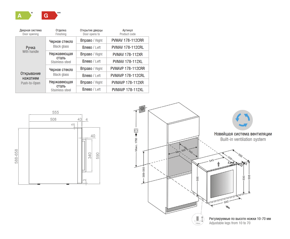 Встраиваемый винный шкаф Pando PVMAV 60-25CRL информация: