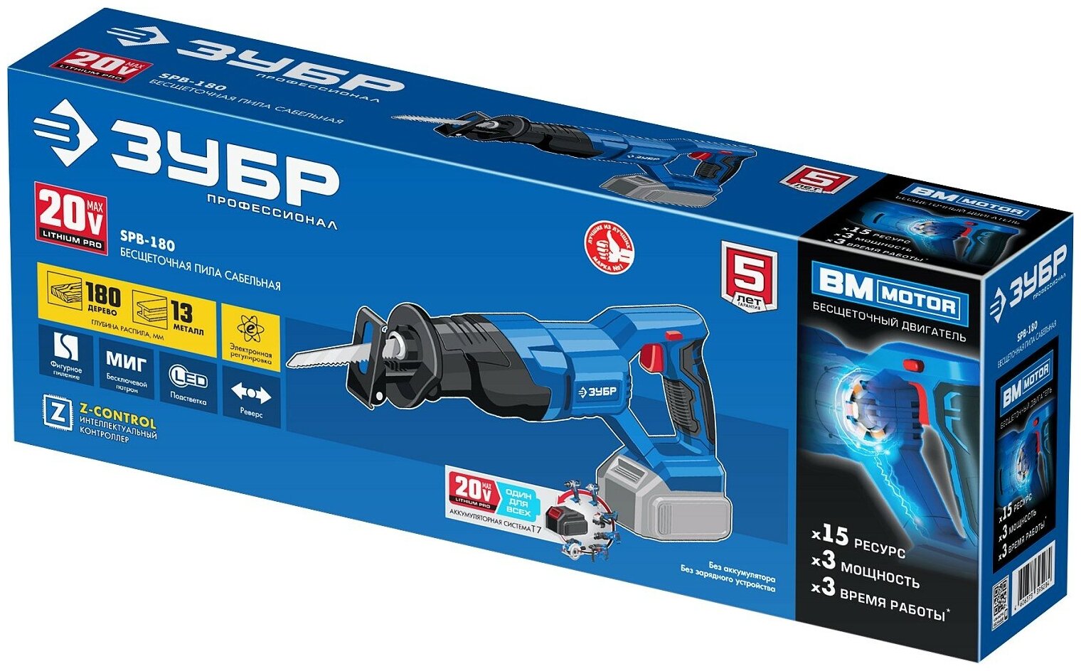 ЗУБР 20В бесщеточная пила сабельная, без АКБ, в коробке, Профессионал. SPB-180 информация: