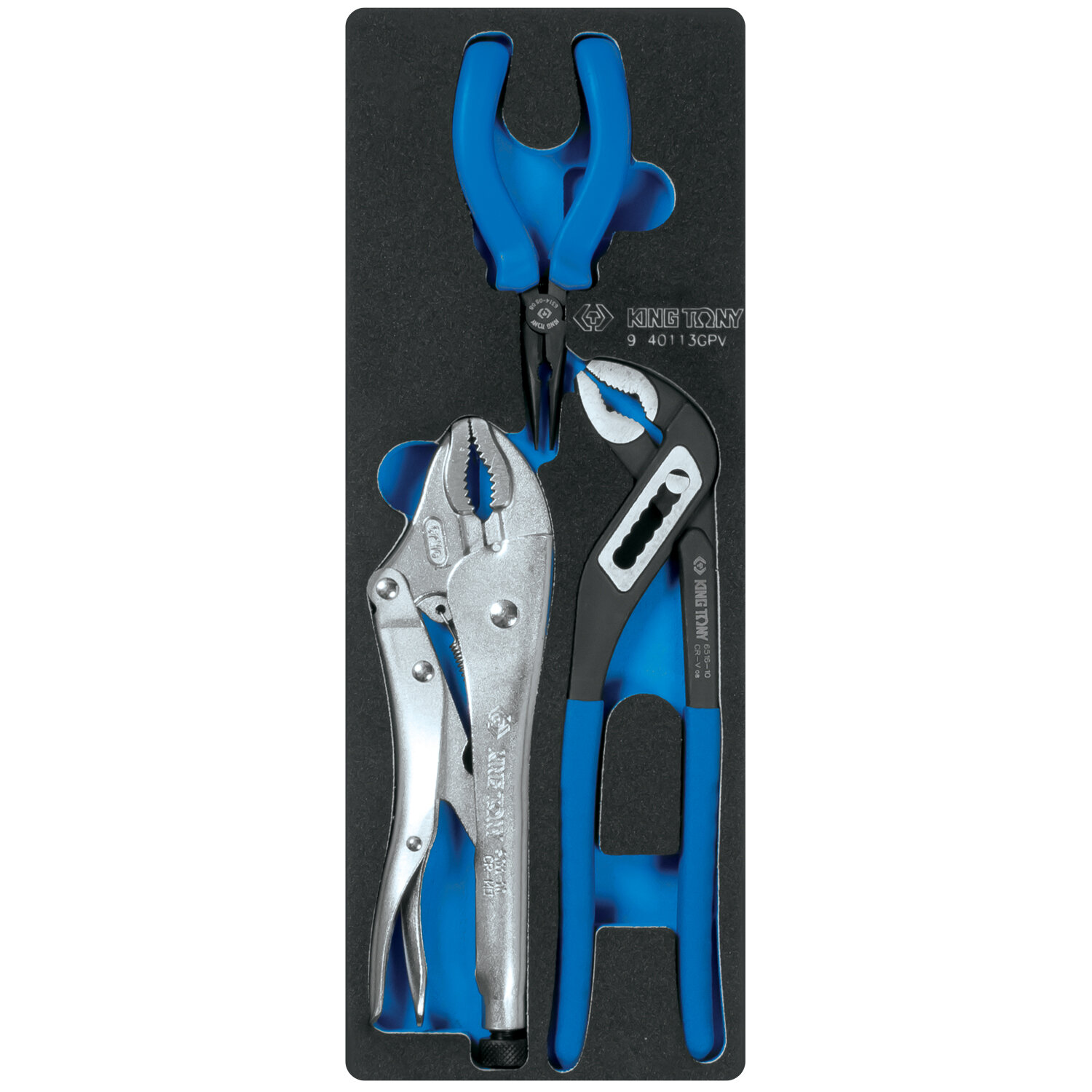 9-40113GPV KING TONY Набор пассатижи, переставные клещи и зажим, ложемент, 3 предмета