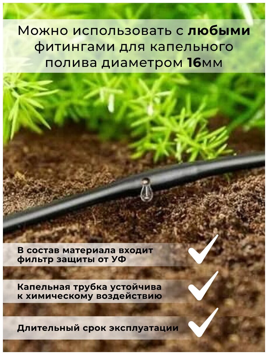 10 цен на Капельная трубка (капельный полив) - 16 мм ( шаг 20 см ) 10 литров в час на 1 метр погонный ( Бухта 25 м)