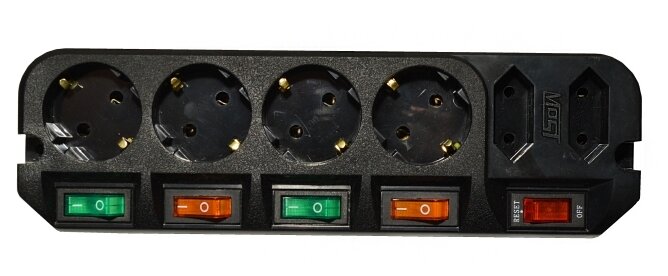 | Дополнительная информация | степень подавления помех: до 30 дБ, максимальная рассеиваемая энергия: 350 Дж, розетки: евро стандарт 4 шт., узкие 2 шт., термобиметаллический предохранитель |