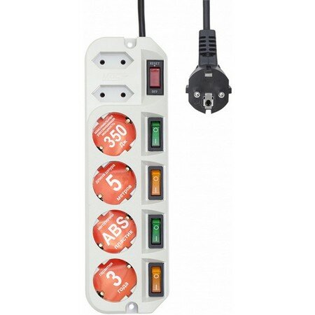 | Дополнительная информация | степень подавления помех: до 30 дБ, максимальная рассеиваемая энергия: 350 Дж, розетки: евро стандарт 4 шт., узкие 2 шт., термобиметаллический предохранитель |