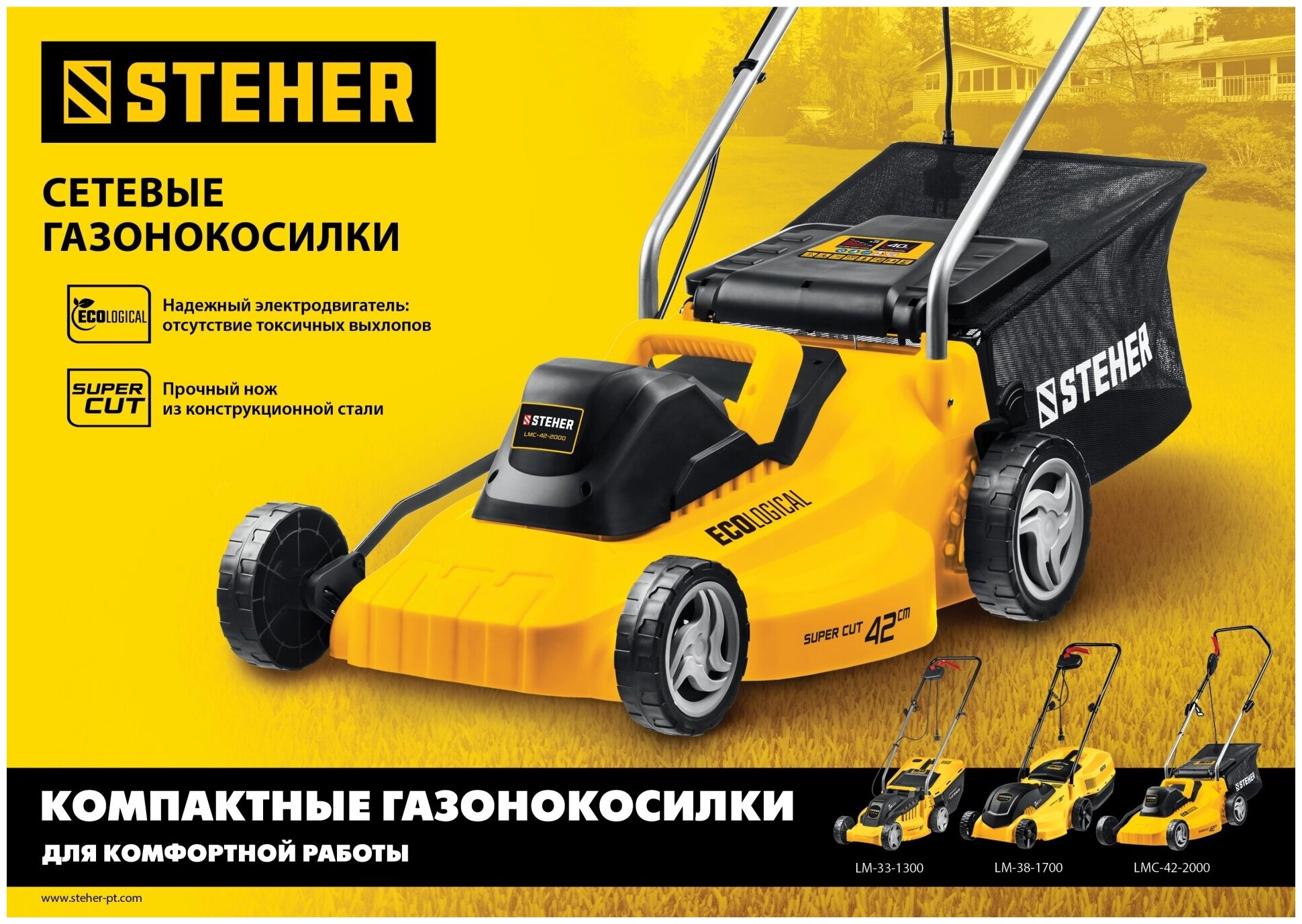 STEHER 1700 Вт газонокосилка сетевая, ш/с 38 см LM-38-1700 информация: