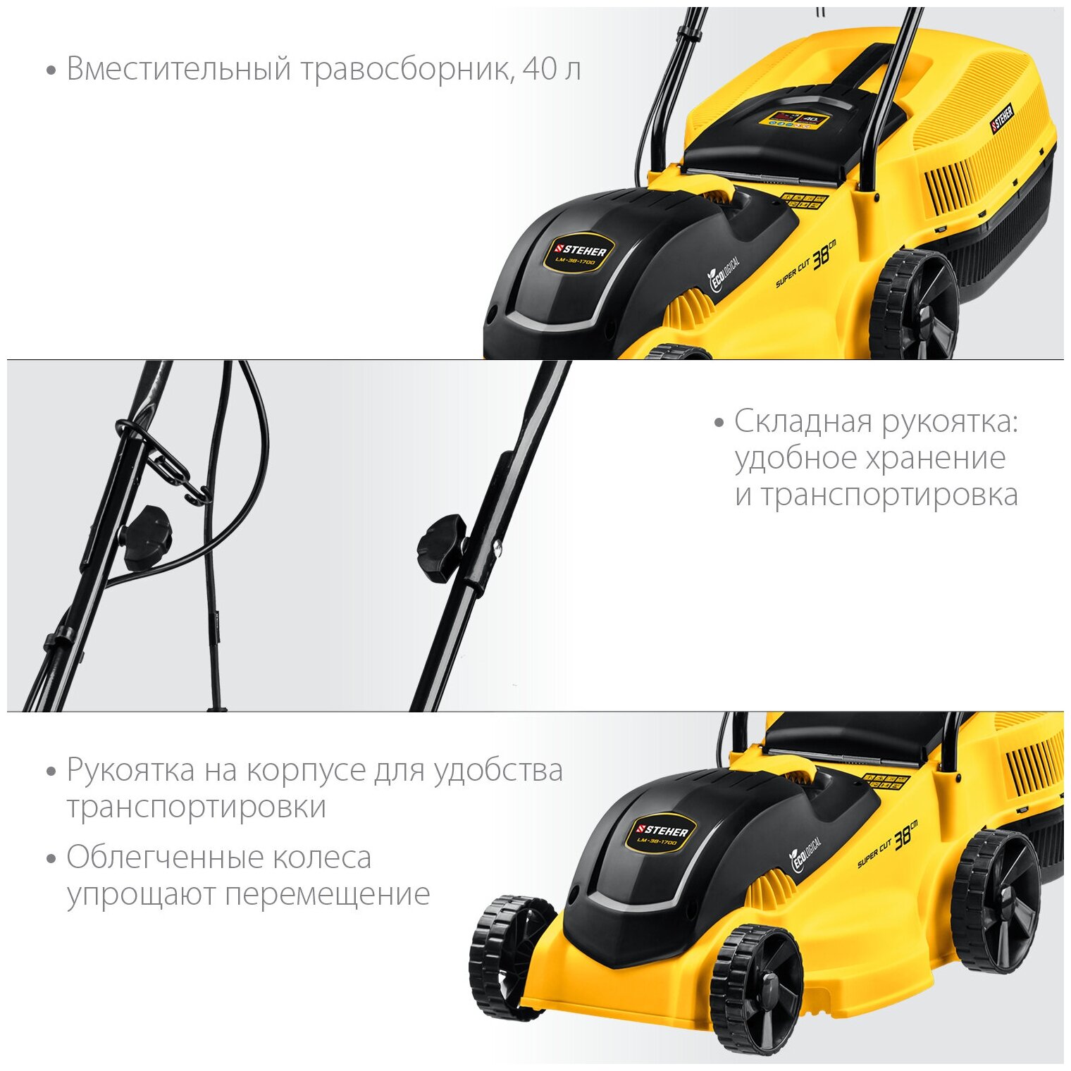 Сетевая газонокосилка STEHER LM-38-1700, 1700 Вт ш/с 38 см