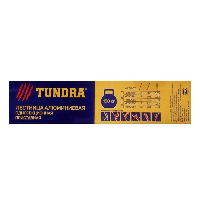 10 цен на Лестница тундра, алюминиевая, односекционная, приставная, 10 ступеней, 2790 мм./В упаковке шт: 1