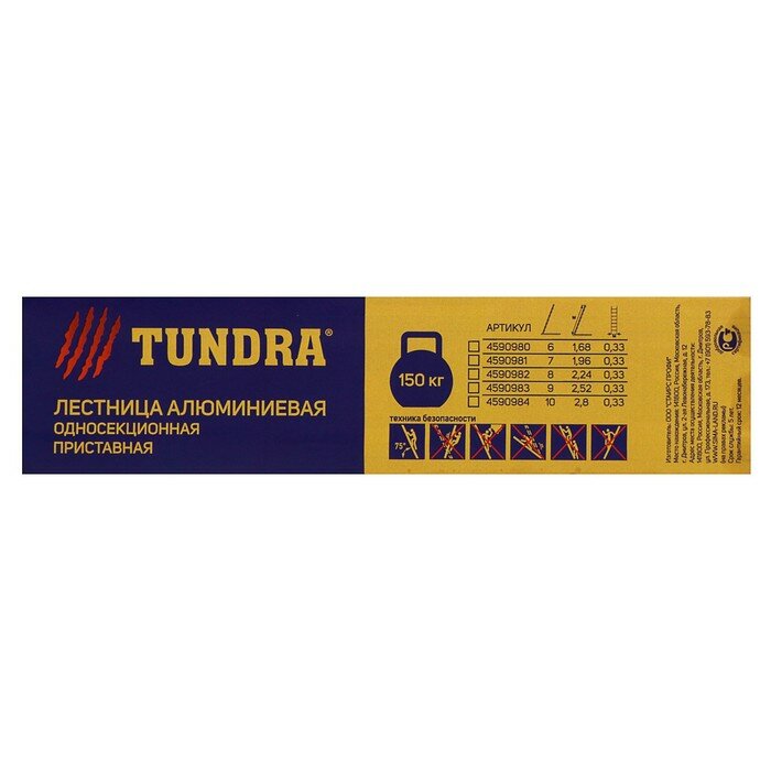10 цен на Лестница тундра, алюминиевая, односекционная, приставная, 9 ступеней, 2510 мм./В упаковке шт: 1