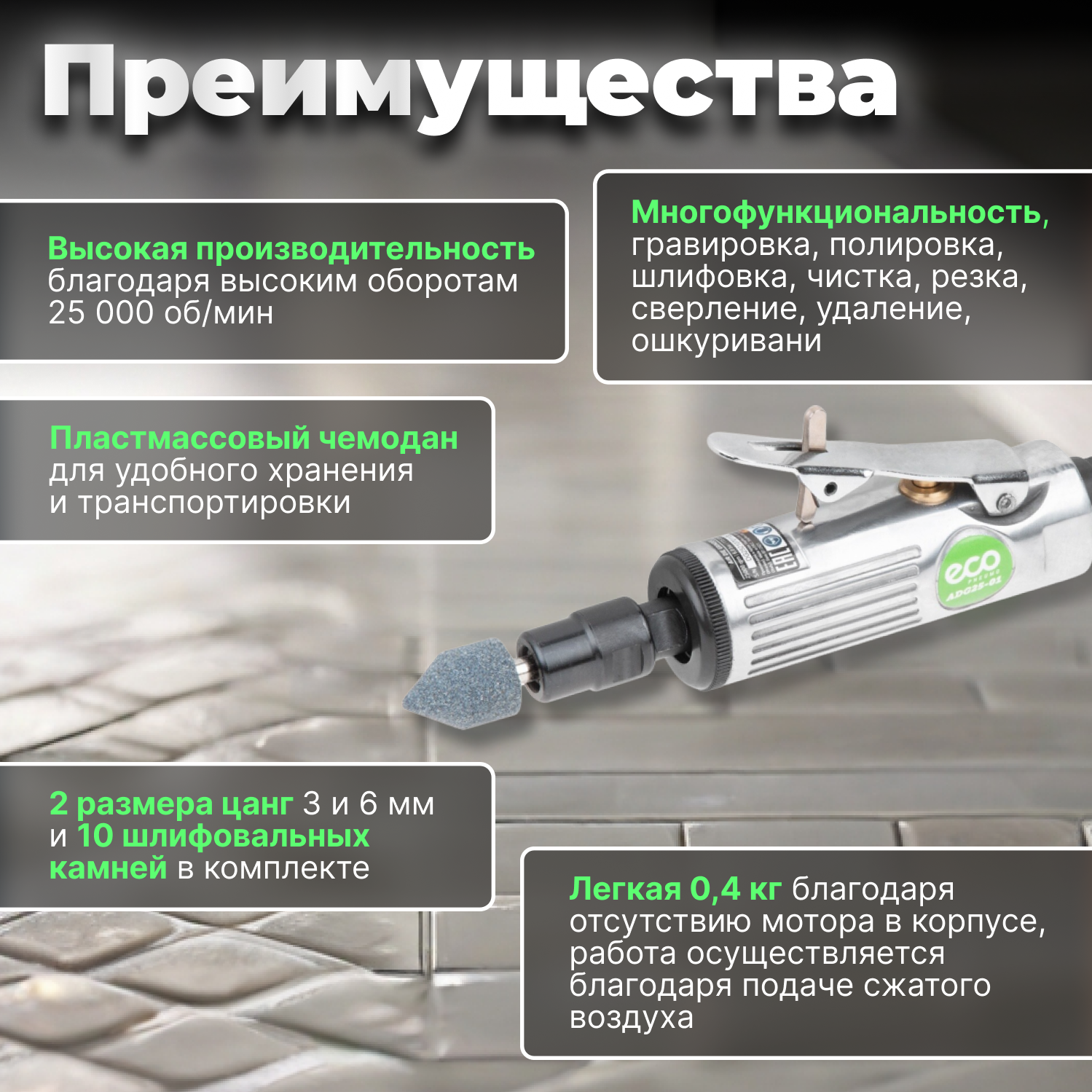 Пневмошлифмашина прямая ECO ADG25-01 информация: