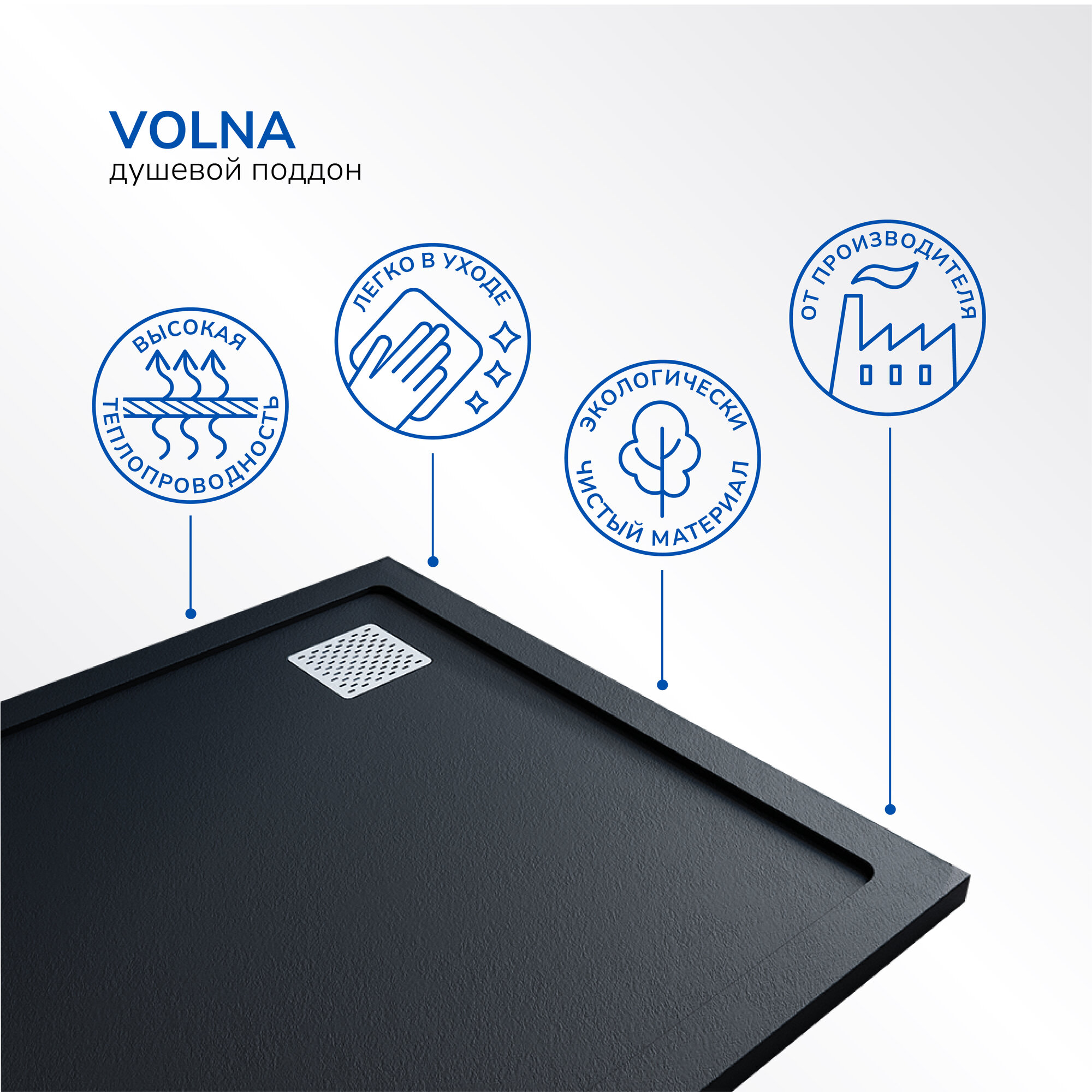 Душевой поддон Ulitka Volna 100х100 см с бортами черный информация: