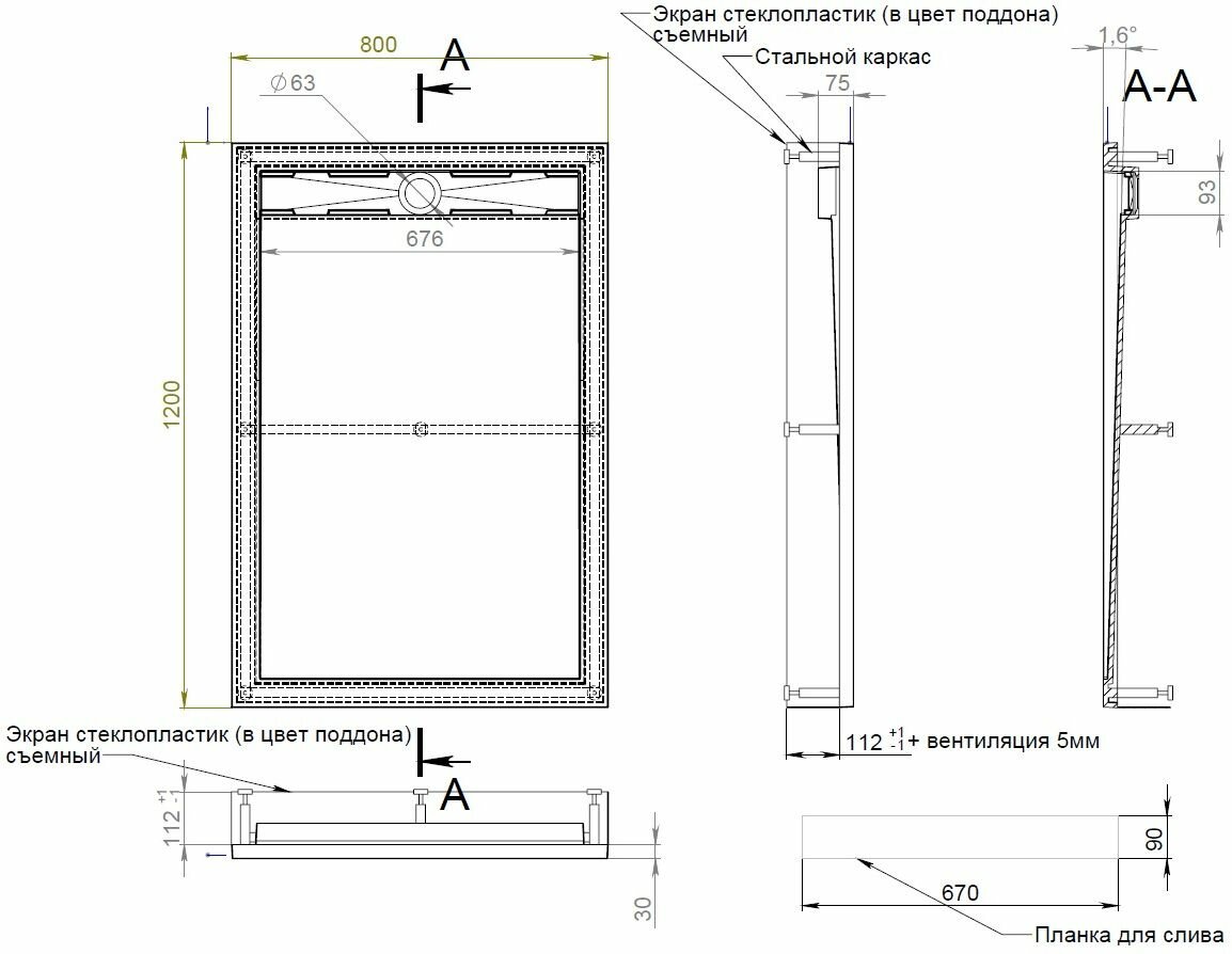 Душевой поддон Aquanet Stone Lite 120x80 (с каркасом и панелью) информация: