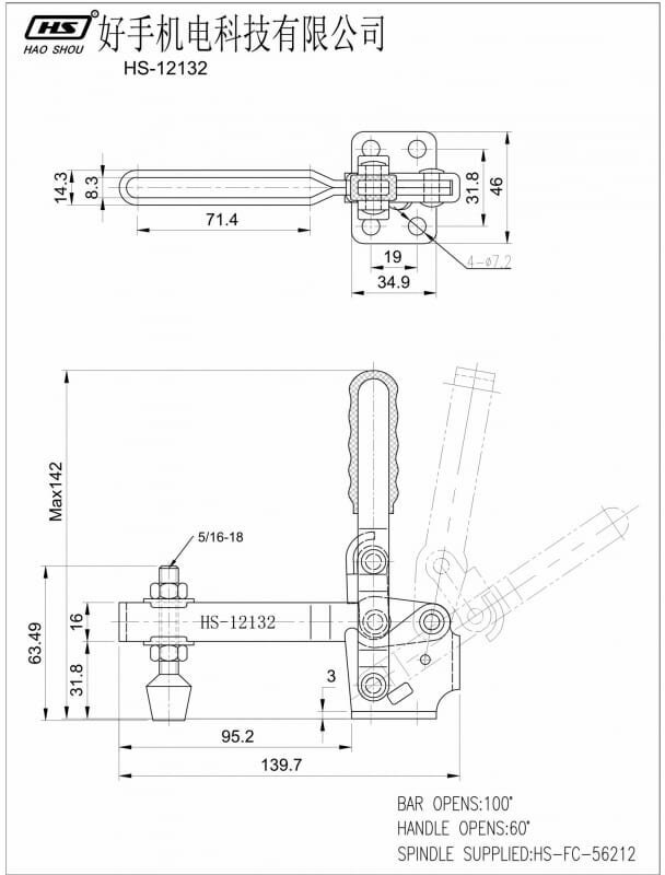 Зажим с вертикальной рукоятью HS CLAMP HS-12132 информация: