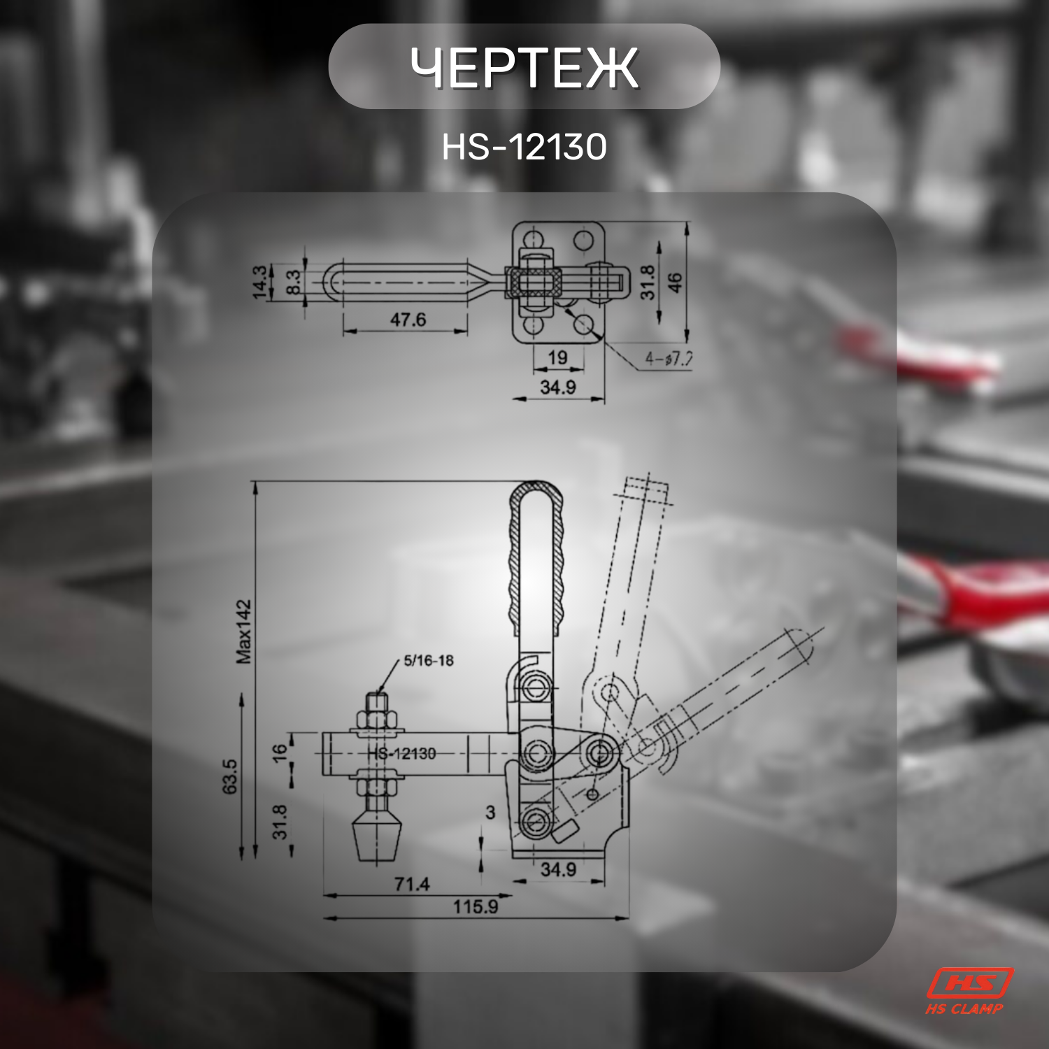 Зажим с вертикальной рукоятью HS CLAMP HS-12130 информация: