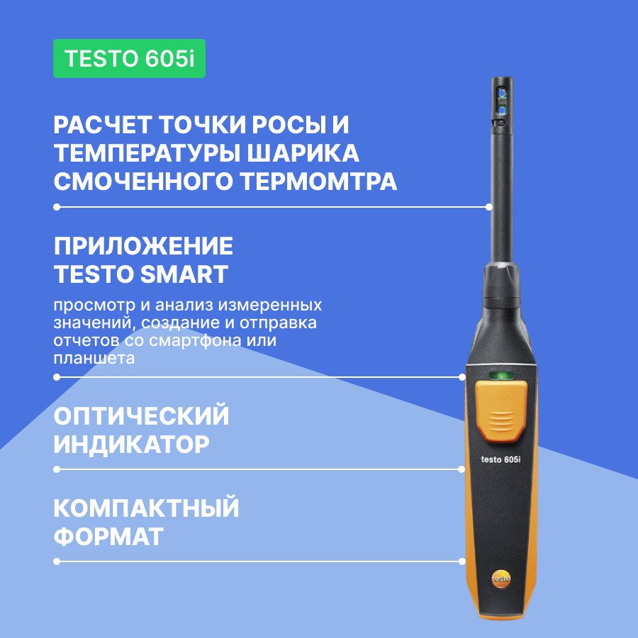 Смарт-зонд testo 605 i - Термогигрометр с Bluetooth 2 поколение, управляемый со смартфона/планшета информация: