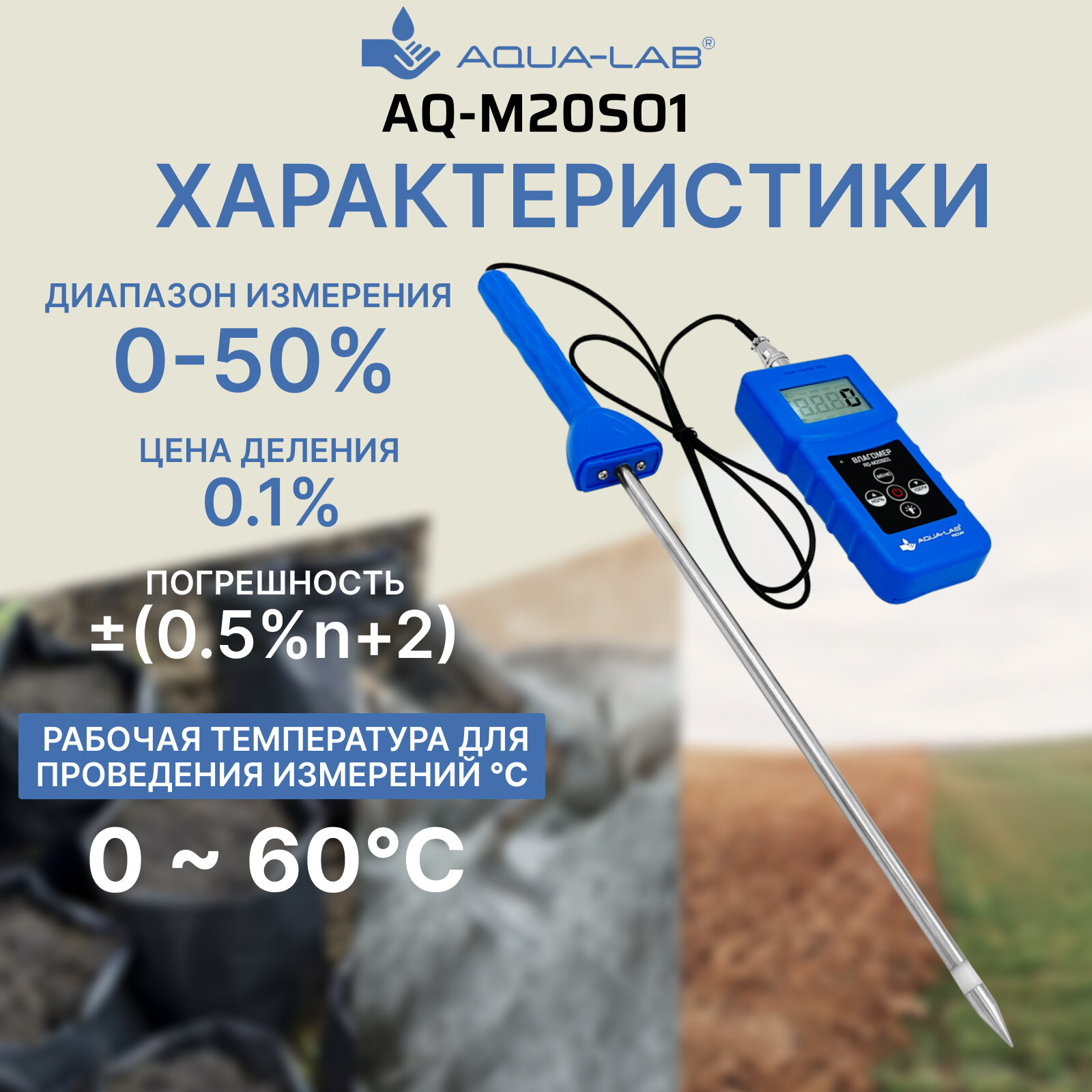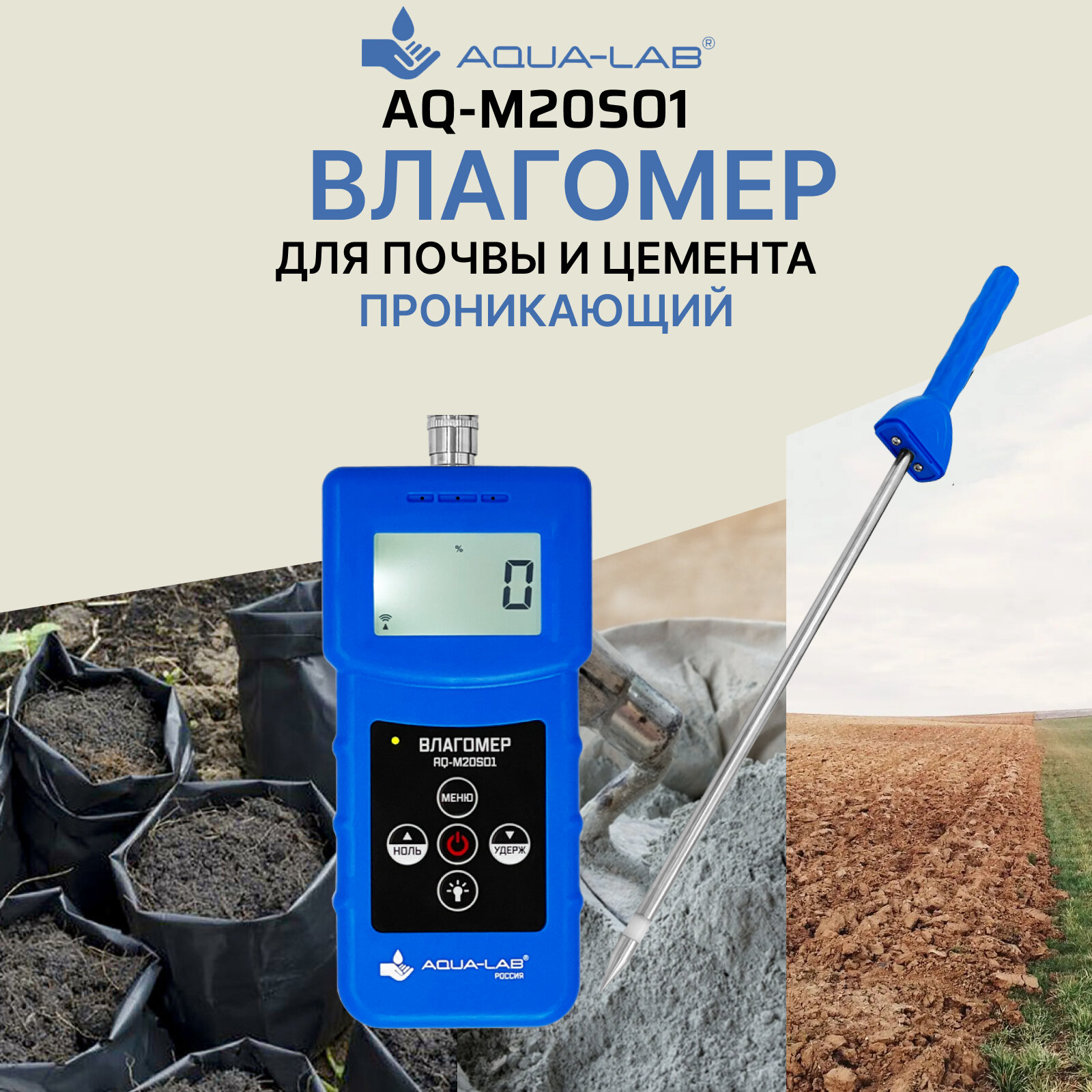 AQUA-LAB AQ-M20SO1 Влагомер для почвы и цемента проникающий информация: