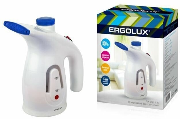 Компактный отпариватель ERGOLUX ELX-GS01-С35 белый/синий 200 мл, 220-240 В, 800 Вт