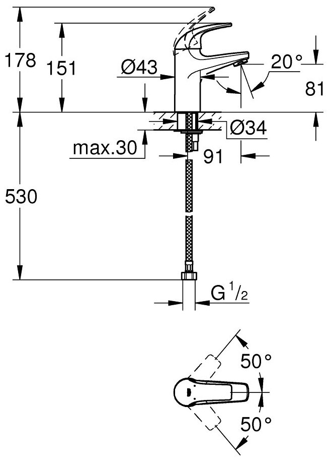 Смеситель для раковины Grohe BauCurve 32848000 хром . информация: