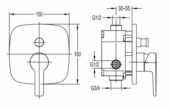 Встраиваемый двухпозиционный смеситель для душа CEZARES TESORO-F-VDIM-01 TESORO-F-VDIM-01 Хром 10 460 ₽