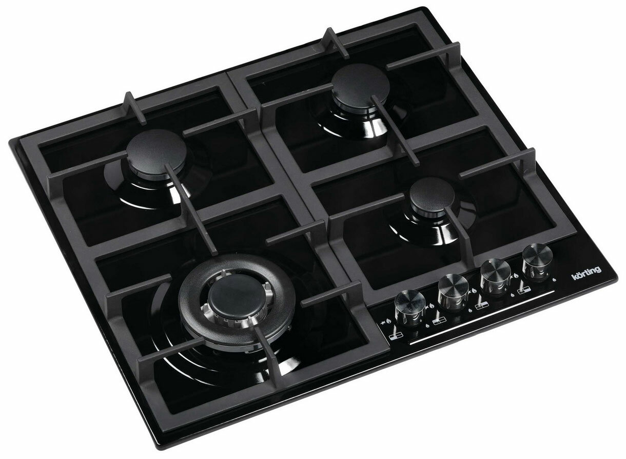 Встраиваемые газовые панели Korting/ Газ, Crystal, 60x51 см, газовая, независимая, электроподжиг, газ-контроль, чугунные решетки, в комплекте - подставка WOK и адаптер для кофейника, цвет-матовый черный