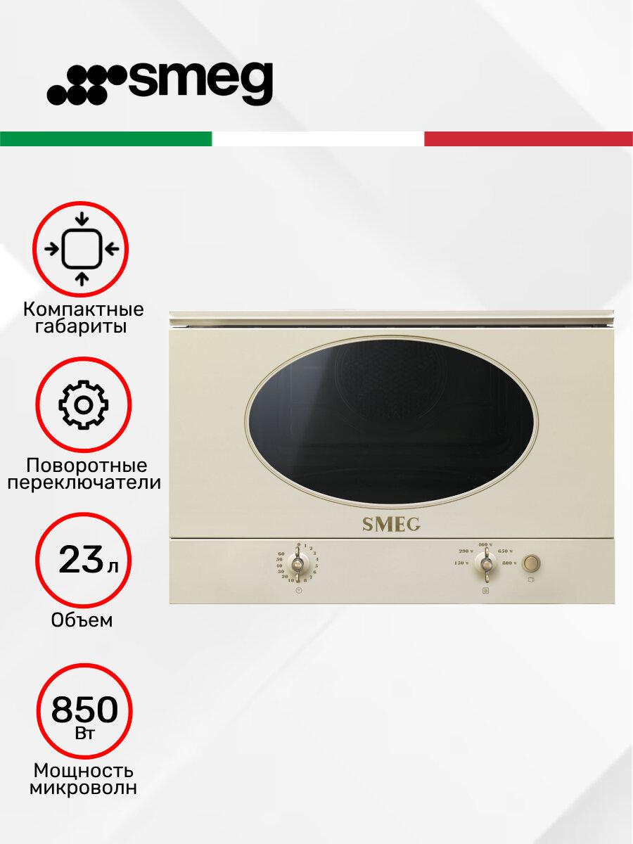 Встраиваемая микроволновая печь Smeg MP822PO, 22 л, высота 38 см, кремовый, Португалия