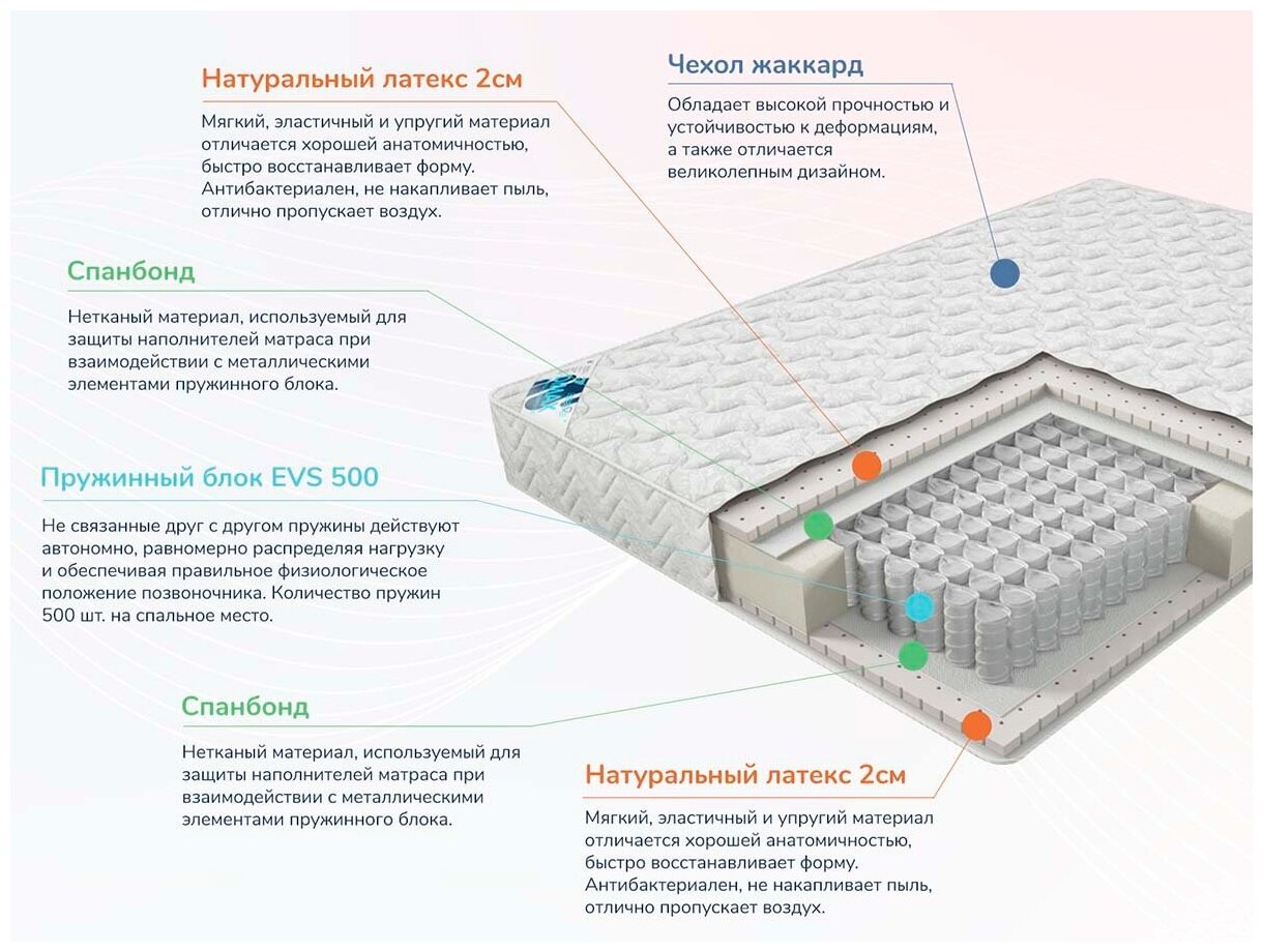 Фабрика Сна Матрас EDMOND, независимые пружины, кокос, средняя жесткость, анатомический, 90х200 см