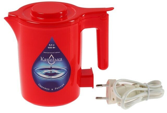 --- Чайник электрический "Капелька", пластик, 0.5 л, 600 Вт, красный