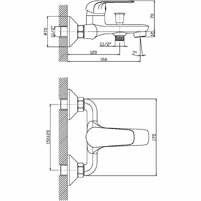 Смеситель на раковину настенный Эверест B46-350 с круглым поворотным изливом, кран-буксы 1/2", хром