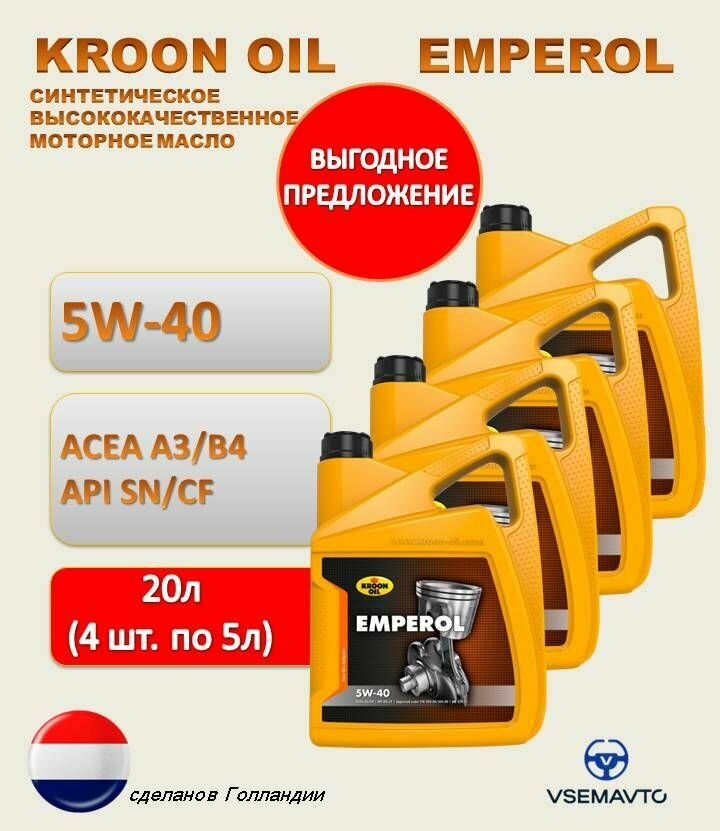 KROON-OIL 37061 , Масло моторное Emperol 5W40 20L ( ) KROON-OIL Нидерланды 21 960 ₽
