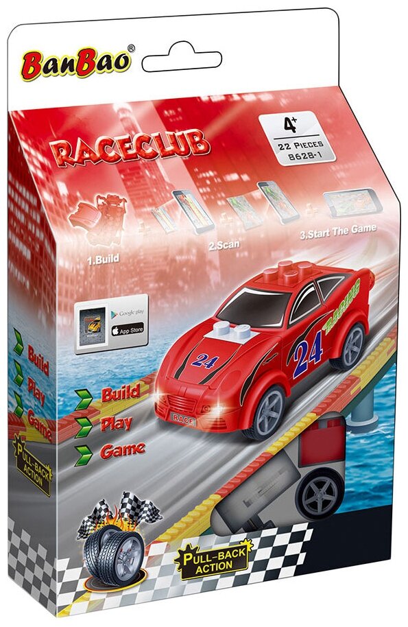 Отзывы на Машина красная/зеленая инерционная, 23 детали (+игра в Google Play & AppStore) конструктор Banbao 8628-1/2