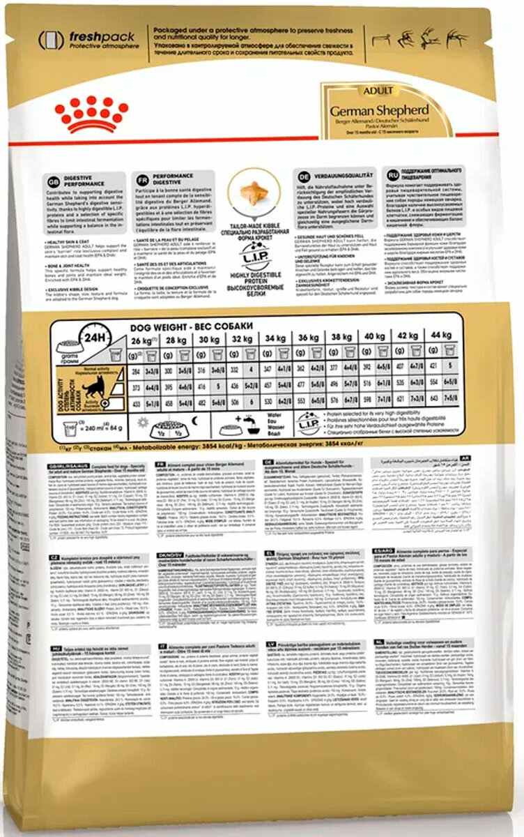 ROYAL CANIN GERMAN SHEPHERD ADULT для взрослых собак немецкая овчарка (11 + 11 кг) информация: