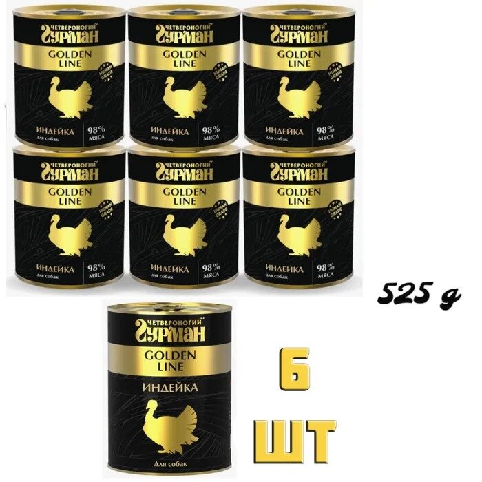 Четвероногий гурман голден консервы для собак Индейка натуральная в желе 525гр х 6шт