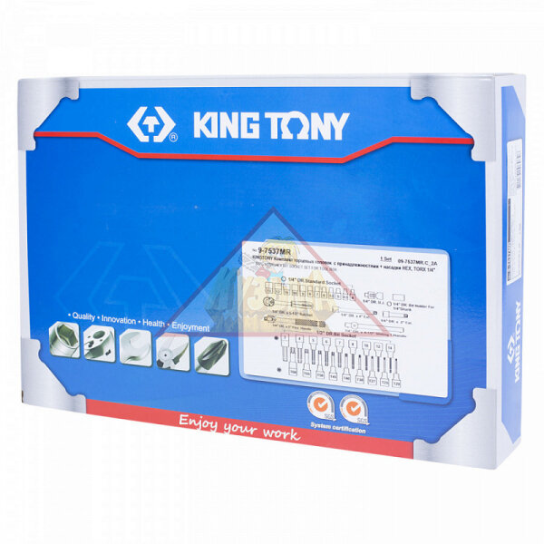 10 цен на Набор торцевых головок 1/4" с принадлежностями, торцевые насадки Hex и Torx, ложемент, 37 предметов KING TONY 9-7537MR